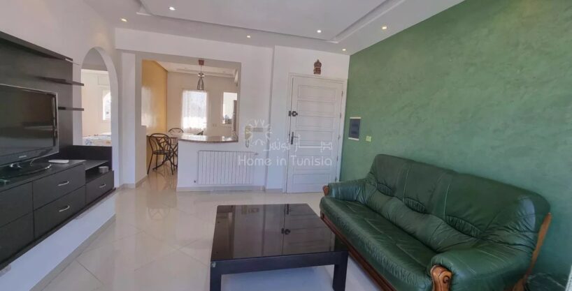 Nous vous proposons à la location un appartement S+2 meublé dans un quartier résidentiel calme et agréable à Kantaoui, situé dans un petit immeuble de standing.