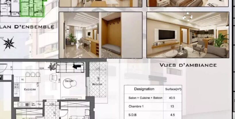 °° Un salon lumineux avec balcon spacieux pour profiter de l’extérieur avec cuisine ouverte équipée