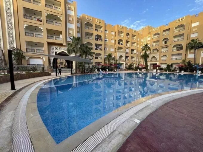 Appartement situé en pleine route touristique de Sousse, à proximité de la mer, d’une plage privé le blooming et de toutes commodités : Transports, Restaurants, Snack bar, Centre commercial, etc.