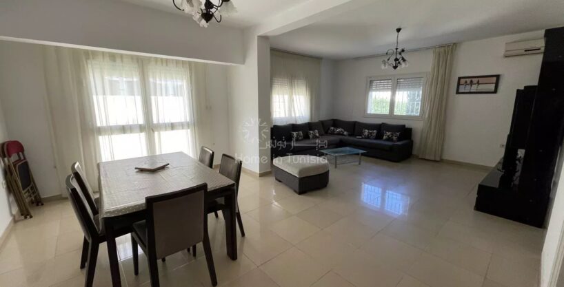 À louer : Appartement spacieux de type S+3 situé à Chatt Mariem, dans une petite résidence familiale de 3 étages, sans ascenseur.