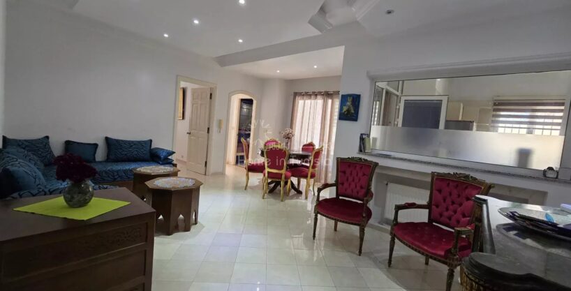 À louer, un coquet et spacieux appartement de type S+2 dans une résidence gardée et sécurisée à Kantaoui, à seulement 1 minutes du Port de Kantaoui, proche de la mer et de toutes les commodités.