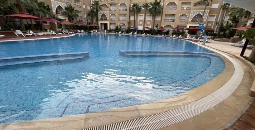 Situé dans une résidence de prestige pieds dans l’eau, cet appartement S+2 en location saisonnière offre un cadre idéal pour des vacances inoubliables. Profitez d’une vue imprenable sur la mer et la piscine depuis un grand balcon lumineux.